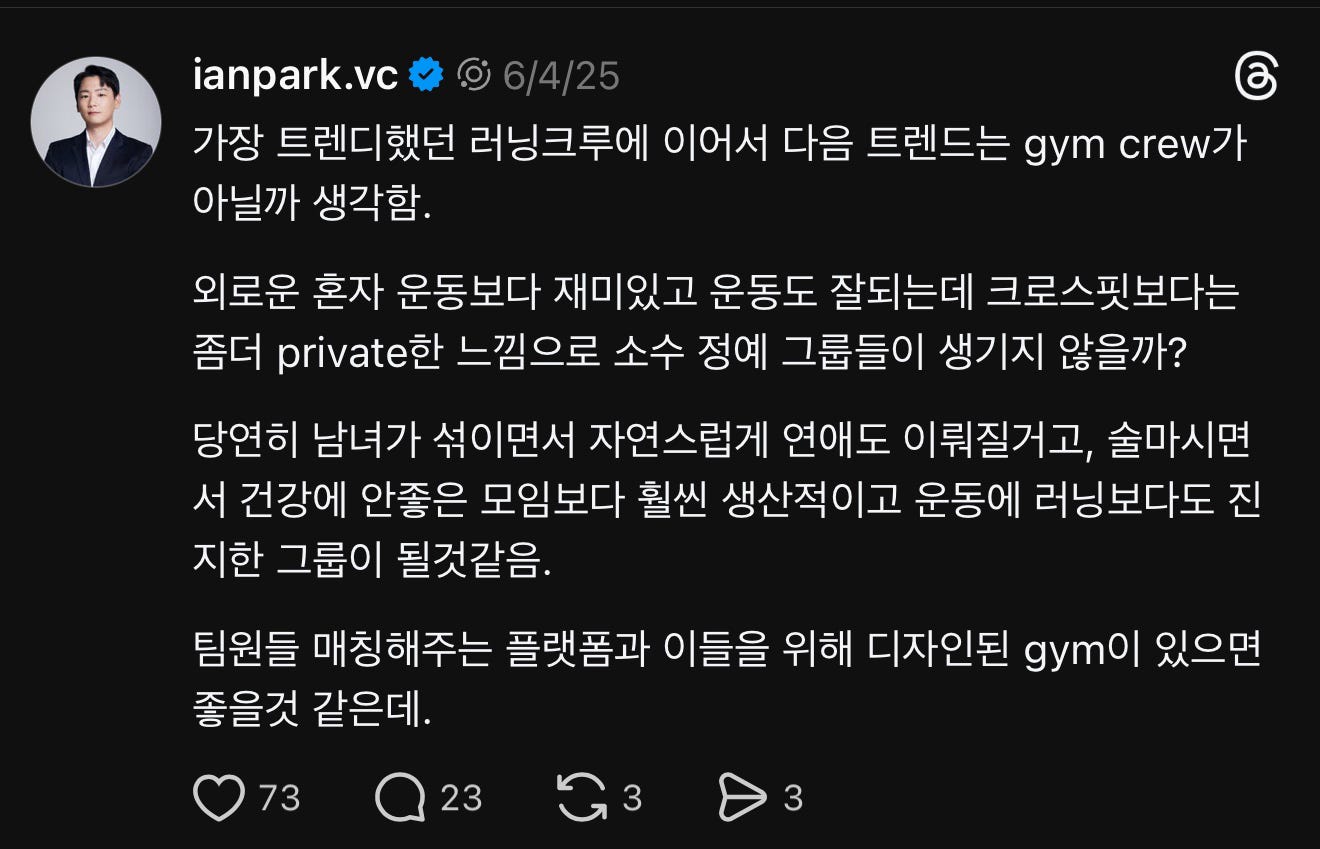 ์์ ์ ์ค๋ ๋์ ์ผ๋ ๊ธ์ธ๋ฐ gym์ ์์ ์ ๋ผ์น๋๊ฑด ํธ๋ ๋๋ฅผ ์ ๋ณธ ๊ฒ ๊ฐ์.