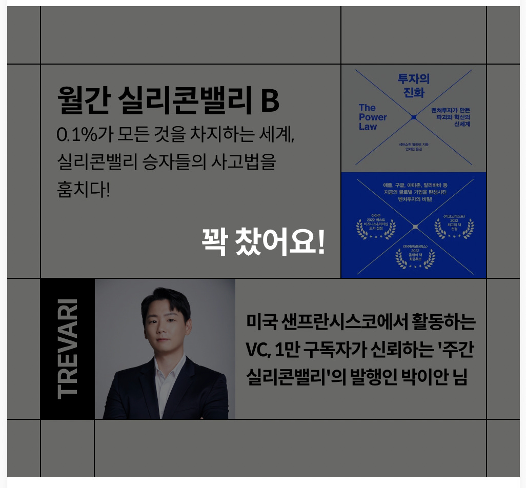 본 커뮤니티의 모든 내용은 대중에게 공개된 정보를 기반으로 한 개인적인 뷰이며 투자에 대한 조언이 아닌 전반적인 미국 실리콘밸리에서 보는 시장, VC, 스타트업, 기술 트렌드에 대한 개인적인 의견들입니다.