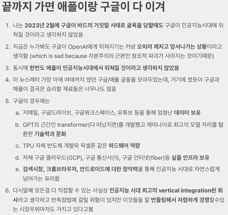 그래서 아직은 구글이 1등이 아니지만, 결국 “끝까지가면 구글이 다 이겨”를 오늘도 생각함.