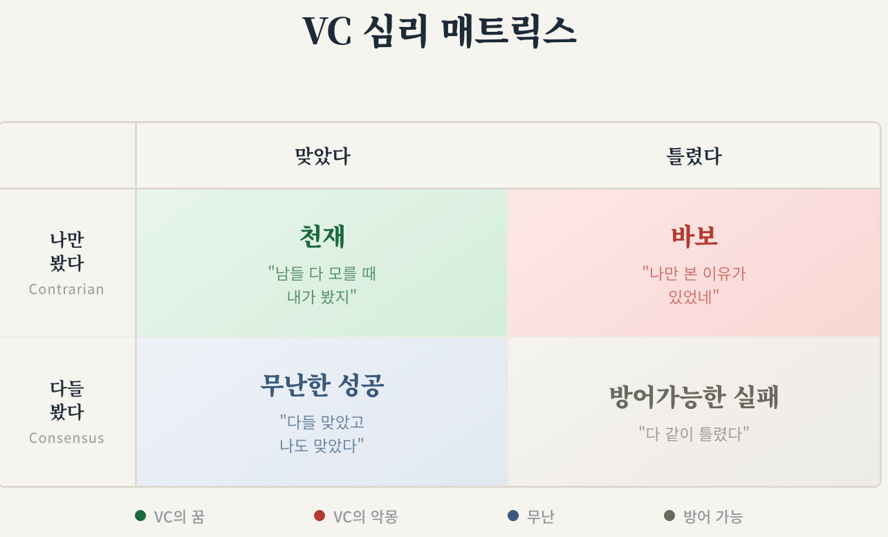 이 글을 처음 시작할 때 “어떻게 하면 VC에게 투자를 받을 수 있는가”라는 질문에서 출발했습니다. 근데 여기까지 읽으신 분은 아마 느끼셨을 겁니다. 피칭을 잘하는 것도 당연히 중요하지만, 더 중요한 건 VC라는 조직의 내부 역학을 이해하고 그에 맞는 게임을 설계하는 겁니다.