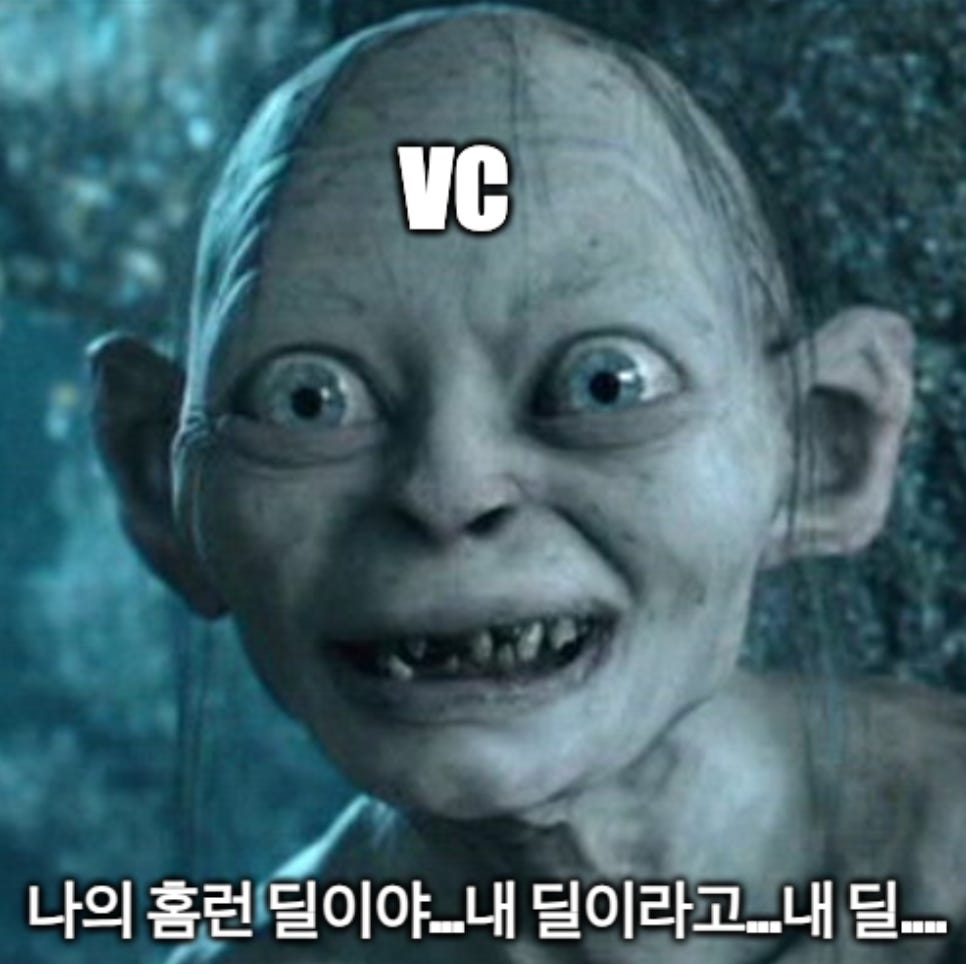 주의: 이번 주 뉴스레터는 역대급으로 깁니다. 하지만 그만큼 시간과 노하우를 많이 쏟아부었으니, 언젠가는 VC로부터 투자를 받으실 계획이 있으신 대표님들께 꼭 추천드립니다. 솔직히 훨씬 더 길게 쓸 수도 있지만, 그럼 거의 책한권이 나올거 같아서 줄여쓰느라 혼났습니다 ㅎㅎㅎ